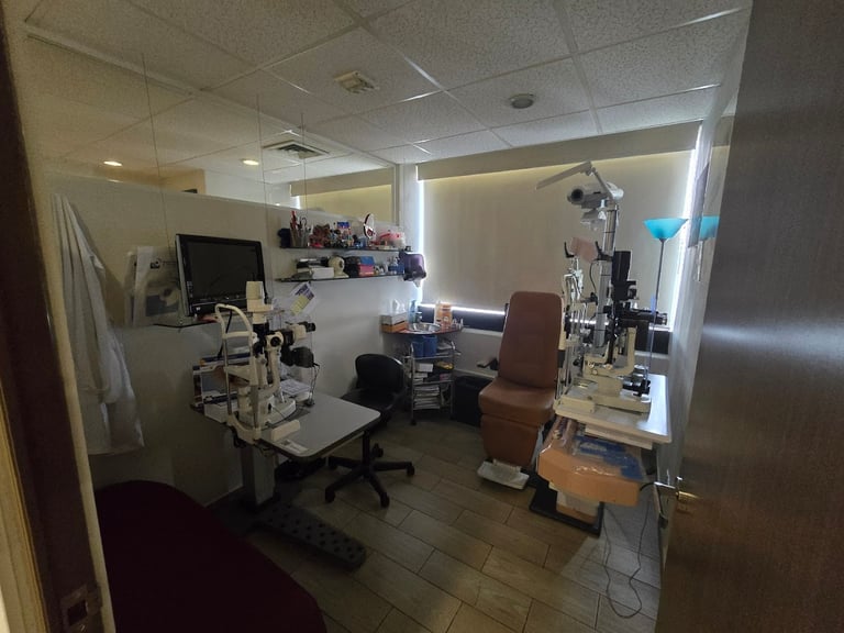 Consultorio oftalmológico con 3 cubículos completos con la mayor tecnología, con la posibilidad de realizar estudios de gabinete oftalmológico al momento, además de contar con servicio de óptica, aplicación de láser de retina y medicamentos oftalmológicos.