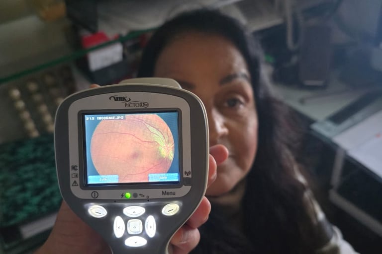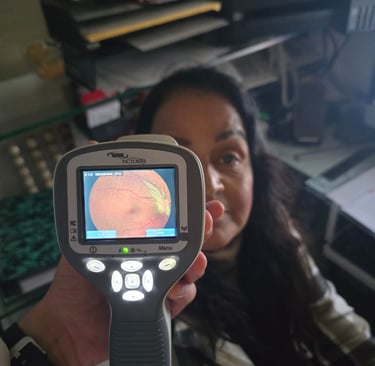Además contamos con la toma de fotografías de fondo de ojo para patología vítreo retiniana, mácula y nervio óptico.